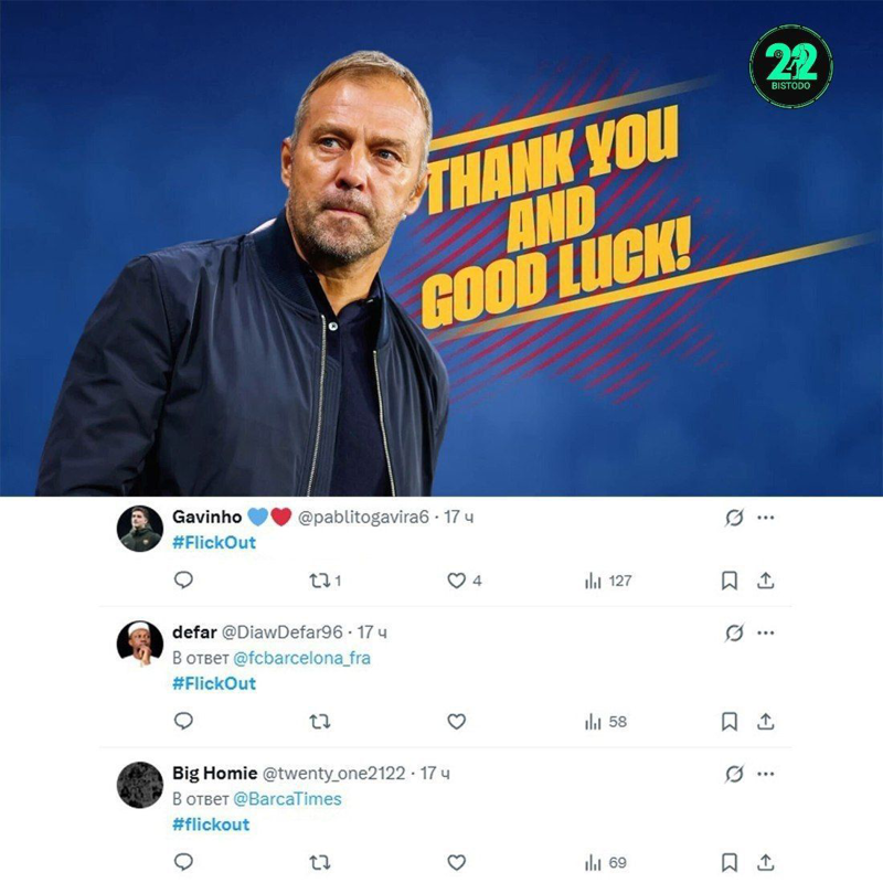 هواداران بارسلونا تو ایکس هشتگ #FlickOut راه انداختن، چون فکر میکنن ایدههاش دیگه جواب نمیده و بازیکنا از شدت خستگی فصل قبل دارن داغون میشن.