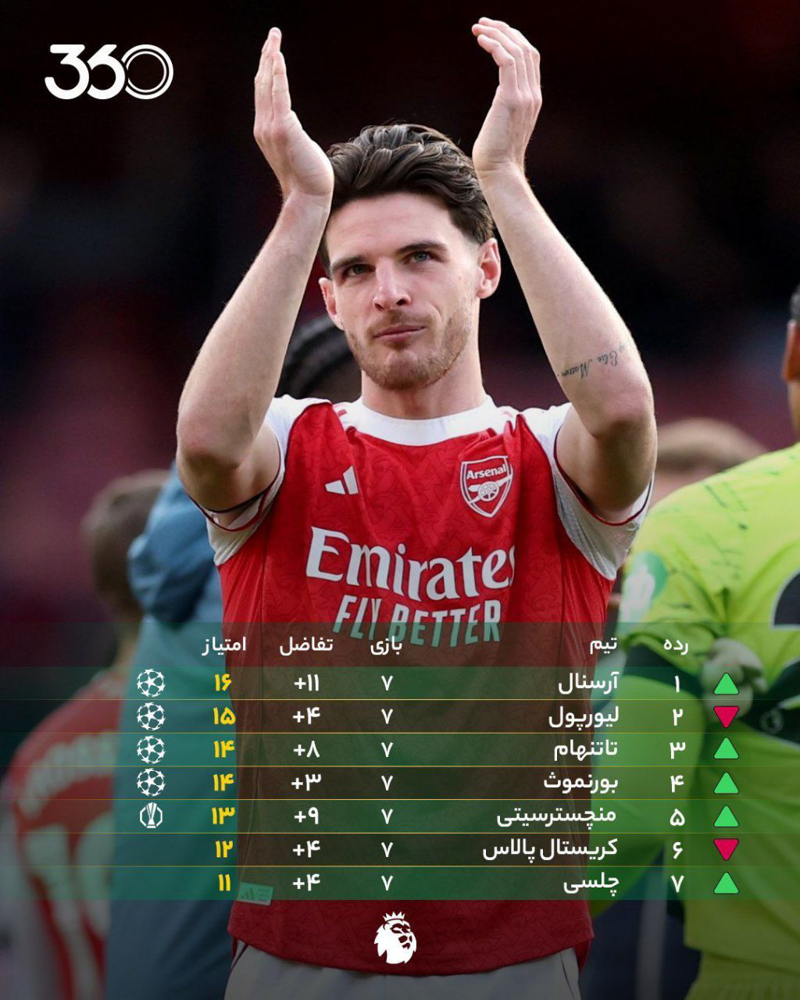 🔸 در پایان بازیهای هفته ۷