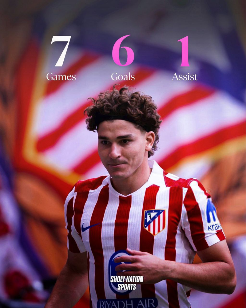 🔺عملکرد درخشان خولیان آلوارز ستاره آرژانتینی اتلتیکومادرید دراینفصل: 7 بازی، 6 گل، 1 پاس گل. دیگو سیمئونه در واکنش به پیشنهادات آلوارز گفته به هر قیمتی که شده باید او رو حفظ کنیم.