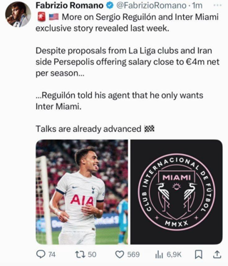 🚨🇮🇷🇺🇸 فووووووری رومانو: سرخیو رگیلون درحالیکه پیشنهاد 4 میلیونی از پرسپولیس ایران داشت، تصمیم گرفت به اینتر میامی بره و هم تیمی شدن با مسی رو به هم تیمی شدن با فرشاد احمدزاده ترجیح داد @foo_tball