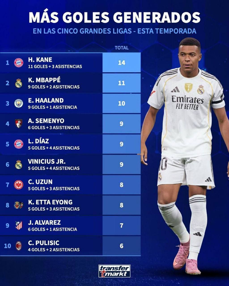 بیشترین تاثیرگذاری مستقیم روی گل در پنج لیگ معتبر اروپایی در این فصل.