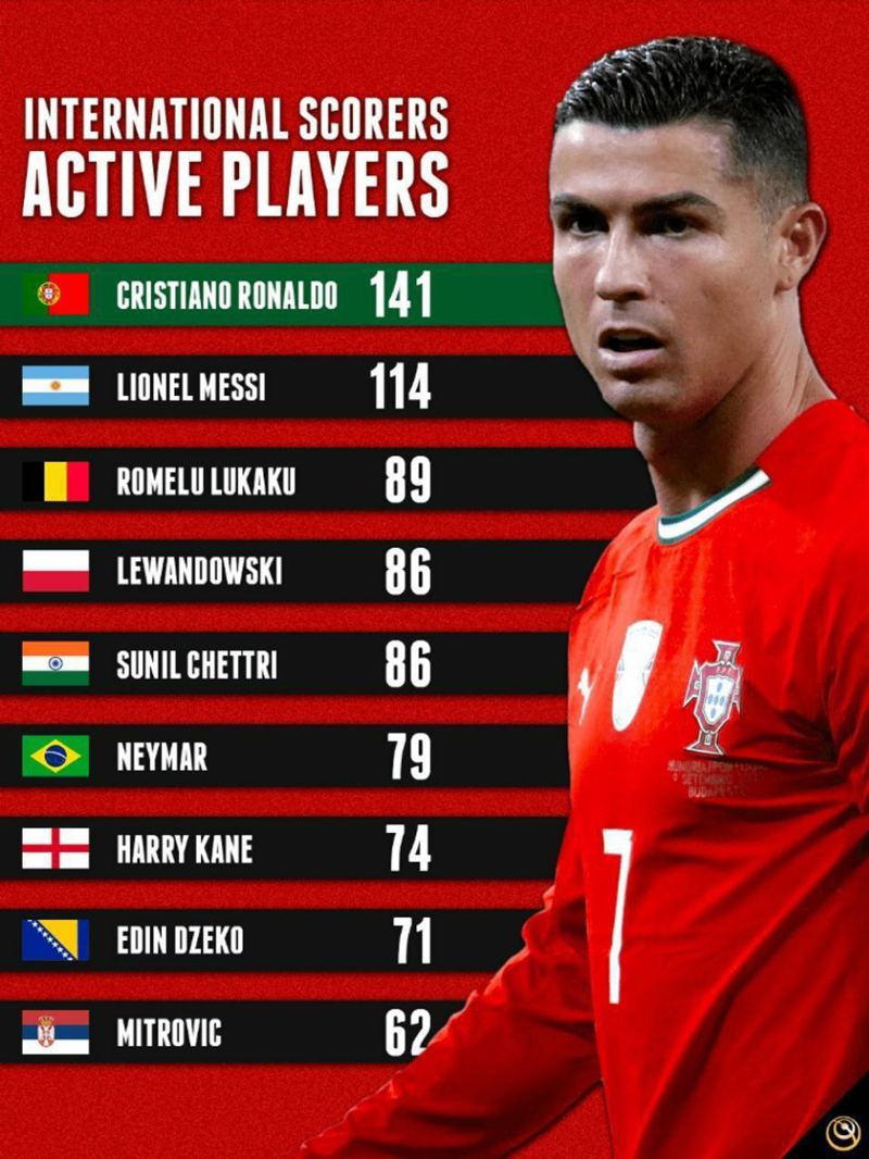 📊 بهترین گلزنان ملی در بین بازیکنان فعال.