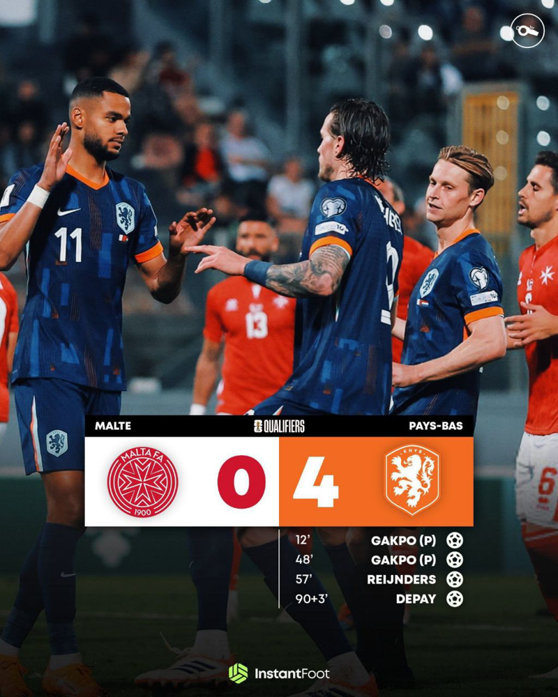 🔵 هلند با درخشش کودی گاکپو با ۴ گل پیروز شد.
