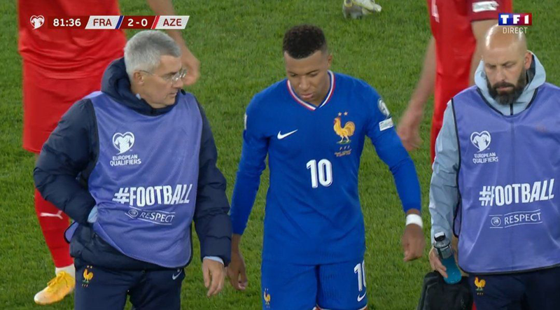 🚨 فوووووووری رادیو مونته کارلو: کیلیان امباپه پس از احساس درد در مچ پای راست خود همان مچی که هفته گذشته مصدوم شده بود، درخواست تعویض کرد. او لنگان لنگان از آنجا خارج شد و مستقیماً به رختکن رفت.