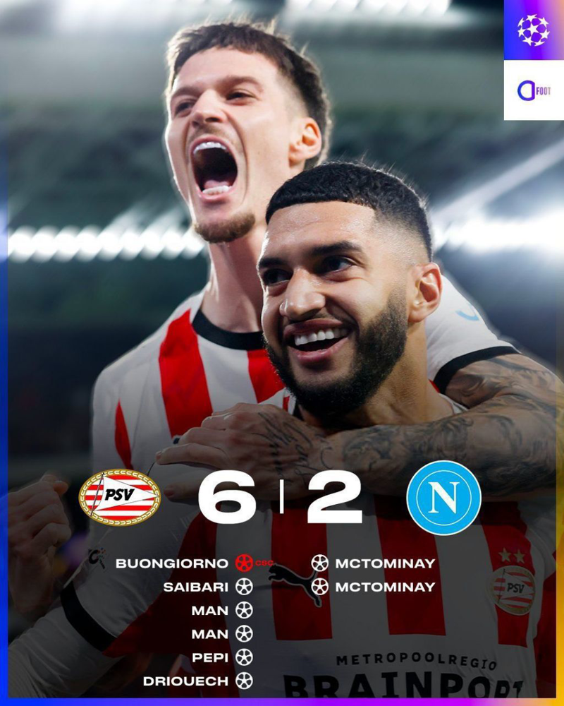 ⚪ کونته و شاگردانش در هلند له شدند! برتری خانگی و پرگل آیندهوون مقابل ناپولی