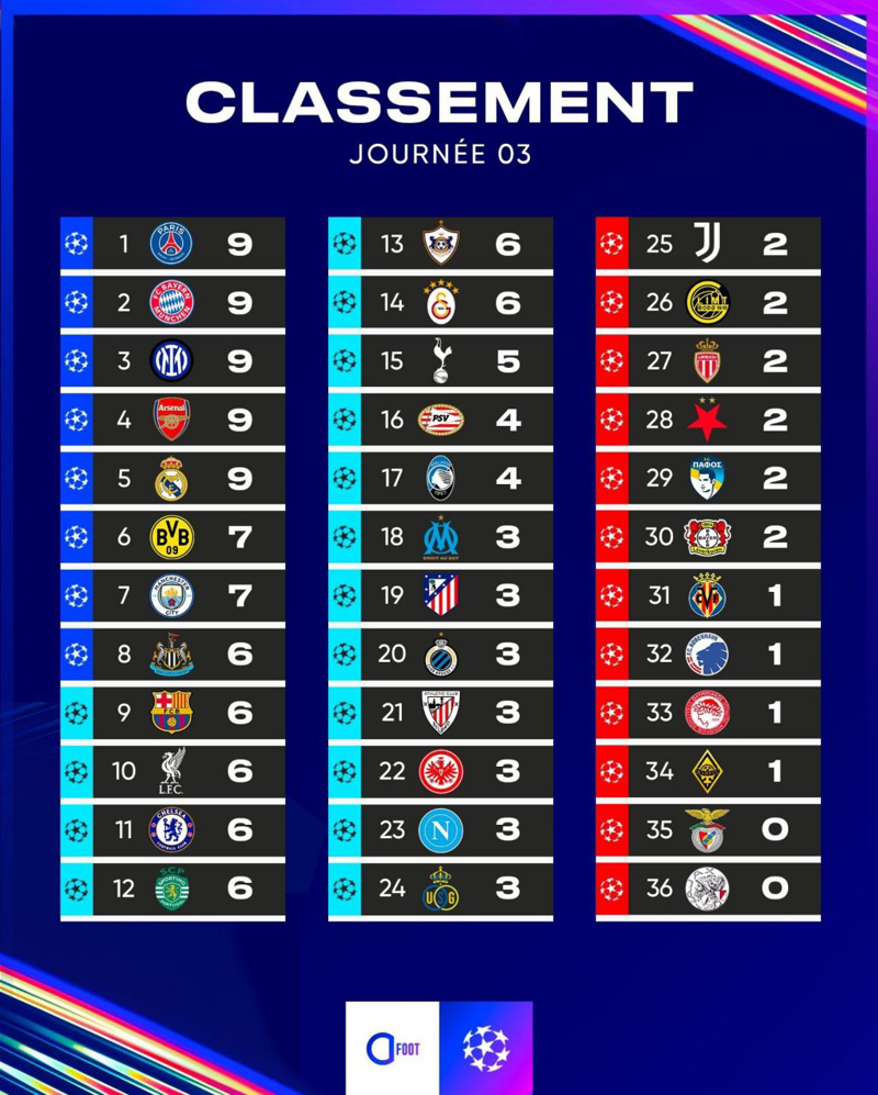 📊 جدول رده بندی لیگ قهرمانان اروپا 2026 با اتمام بازی های هفته سوم