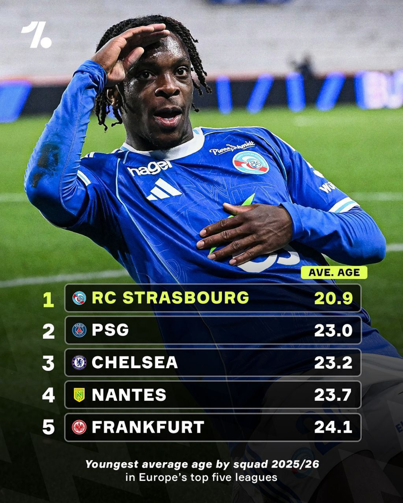 📊 جوان ترین تیم های حال حاضر اروپا.