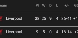 تعداد باختای این فصل لیورپول در لیگ جزیره با فصل قبلش برابر شد. (۴)