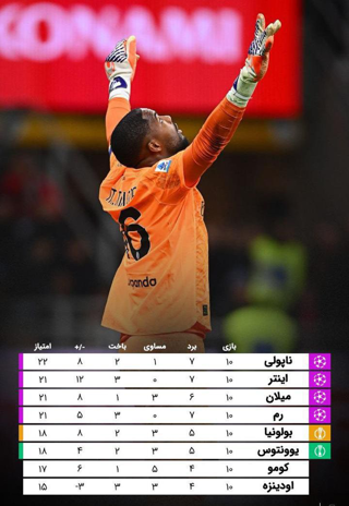 🏆جدول رقابتهای #سریآ پس از پایان دیدارهای امشب از هفته دهم