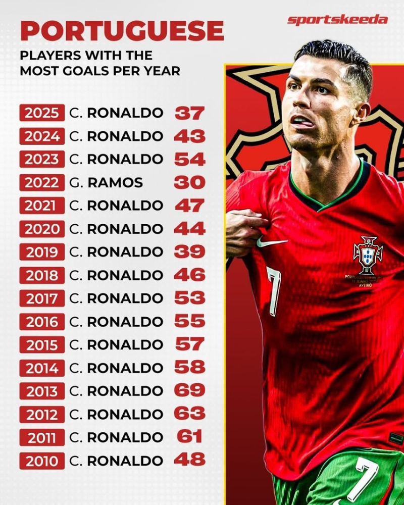 📊 بازیکنان پرتغالی با بیشترین گل در یک سال تقویمی!