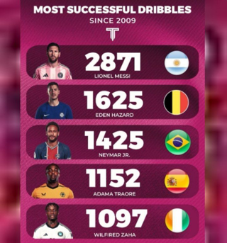 بیشترین دریبل موفق از سال²⁰⁰⁹