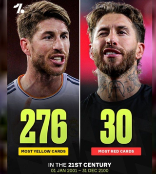 تعداد کارت زرد و قرمز راموس تو دوران فوتبالش: