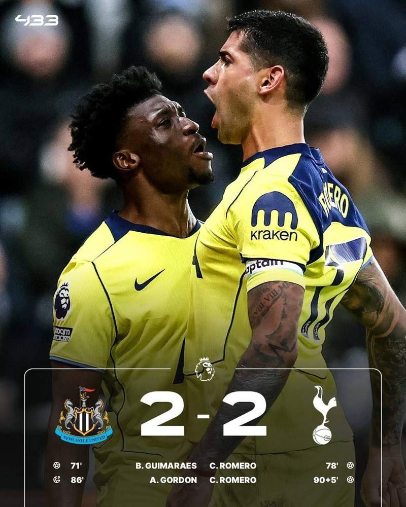 🟡 دبل رومرو پیروزی را از چنگ نیوکاسل درآورد.