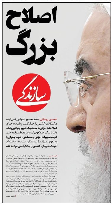 🔹حسن روحانی دوباره برگشته و گفته اصلاحات جزئی فایده ندارد و باید اصلاحات بزرگ انجام شود. حرف درستی است؛ بزرگترین اصلاح را امروز قوه قضاییه باید انجام دهد و با امثال تو که