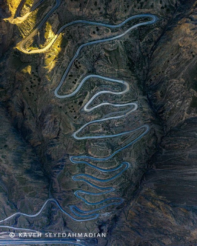 خطرناکترین جاده ایران، جاده روستای ناندل، آمل، تو این عکس از جاده هراز تا اون بالا ۵ کیلومتر مسیره که ۶۰۰ متر ارتفاع میره بالا یعنی اندازه دو تا برج میلاد بالا میره