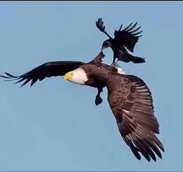 تنها پرنده ای جرئت میکنه عقابو نوک بزنه دورِنگوی سیاهه، اون پشت عقاب می شینه و گردنشو گاز می گیره.