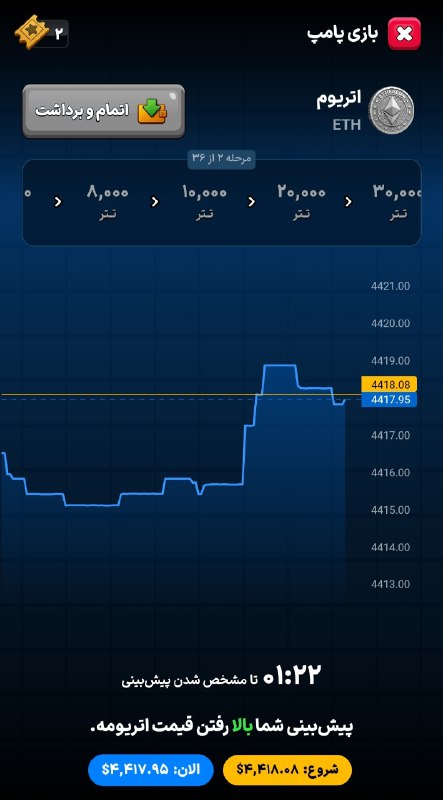 🔹پامپ ۲ والکس شروع شده و والکسیها یه ایده جالب و جدید رو کردن. 🔹بازی جدید با درآمد دلاری! این بازی به این شکله که فقط کافیه بتونی حدس بزنی که تا ۲ دقیقه دیگه اتریوم بالاتر می ره یا میریزه؛