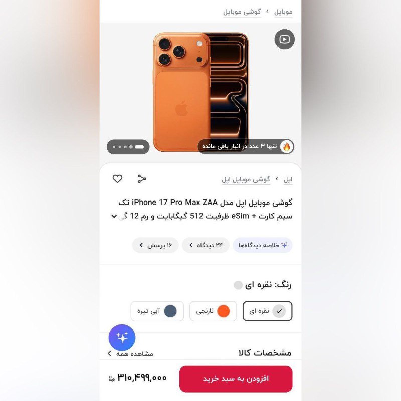 تمامی آیفون ۱۷های دیجیکالا دیروز تو کمتر از یک ساعت بعد از شروع فروش فروخته شد!