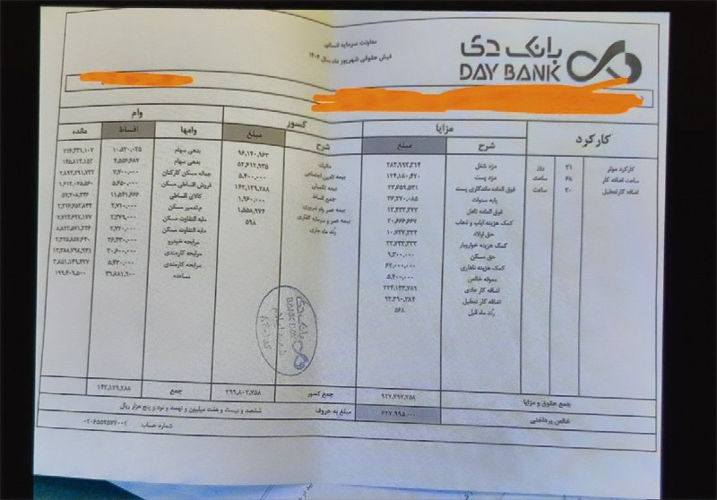 یه فیش حقوقی از یه کارمند بانک دی تو ایلام منتشر شده که نکته جالبش علاوه به ۹۲ میلیون حقوق و مزایا، ۴/۵ میلیارد وامه که قسطش فقط ۱۴ میلیونه و یکی از وامها ۱/۵ میلیارده و قسطش ۲ میلیون یعنی وام با اقساط بیش از ۶۰ سال!