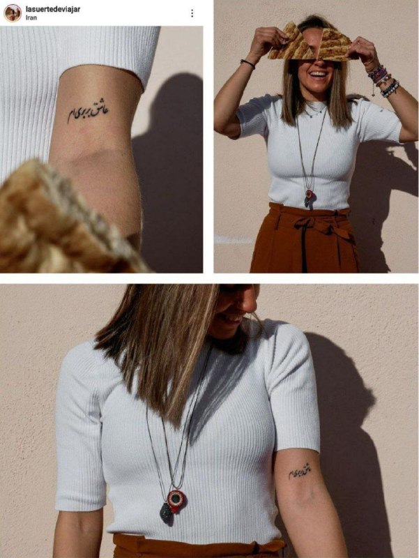 این خانم گردشگر اسپانیایی به اسم مانا که یه مدتی تو ایران اقامت داشت، اونقدر عاشق صبحونه‌های ایرانی مخصوصاً نون بربری با پنیر و چایی شده بود که وقتی برگشت کشورش، تصمیم گرفت این عبارت رو روی دستش تتو کنه.