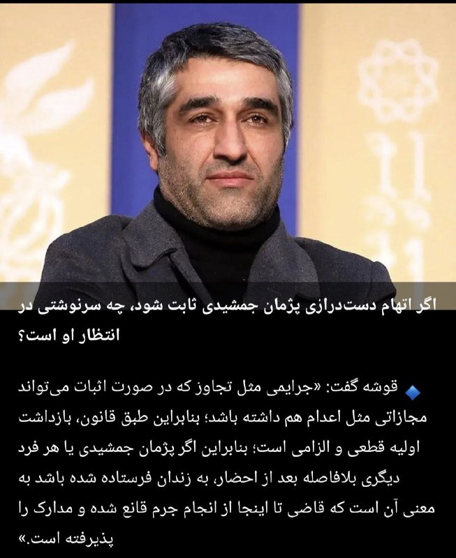 این دختری که از پژمان شکایت کرده بارها و بارها به میل خودش اونجا رفت‌وآمد کرده و یه سانتافه سفید داره. دید پژمان جوابشو نمیده رفته شکایت کرده. اونجا افراد معروفی مثل سروش صحت؛ ل