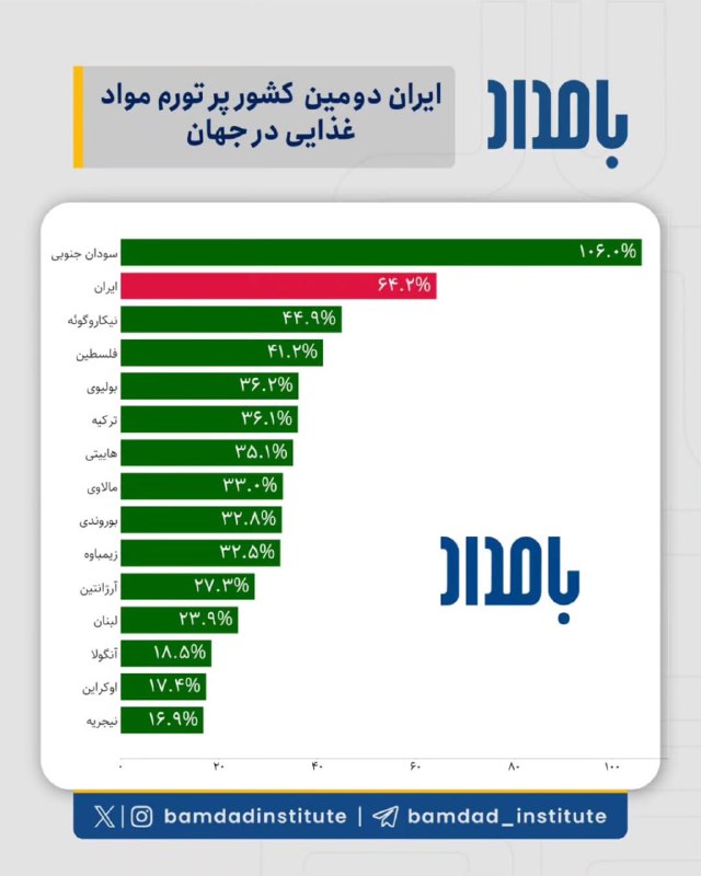 🔹تورم مواد غذایی در ایران پس از سودان جنوبی در جهان بیشترین است.