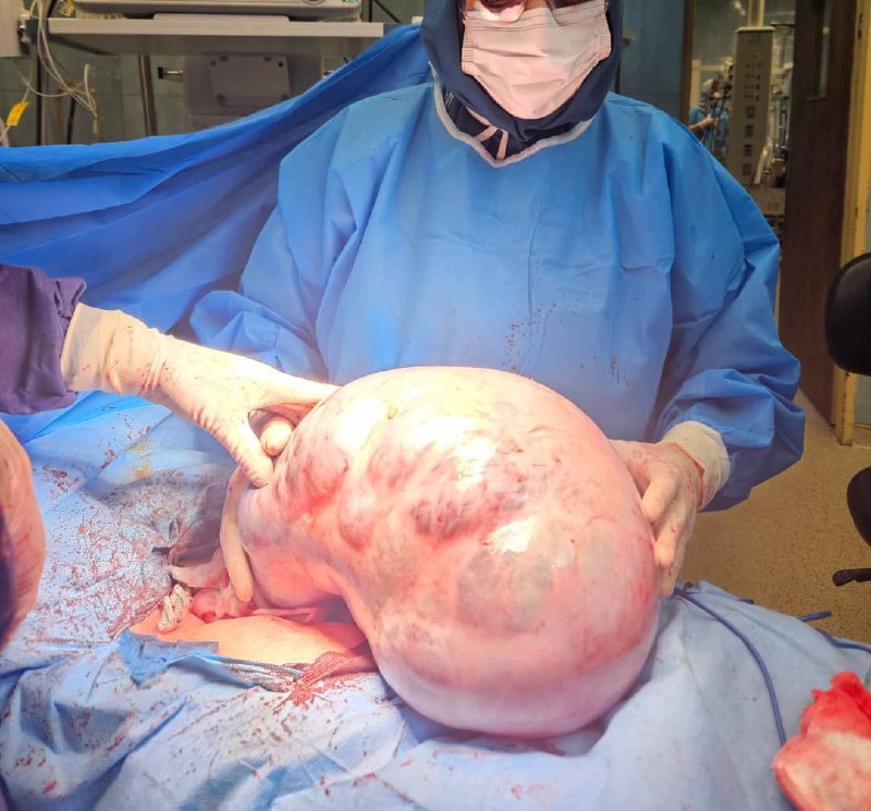 🔹 توده‌ای ۴۰ سانتی‌متری با وزن حدود ۱۰ کیلوگرم از شکم یک خانم ۴۲ ساله در بیمارستان کمالی کرج خارج شد.