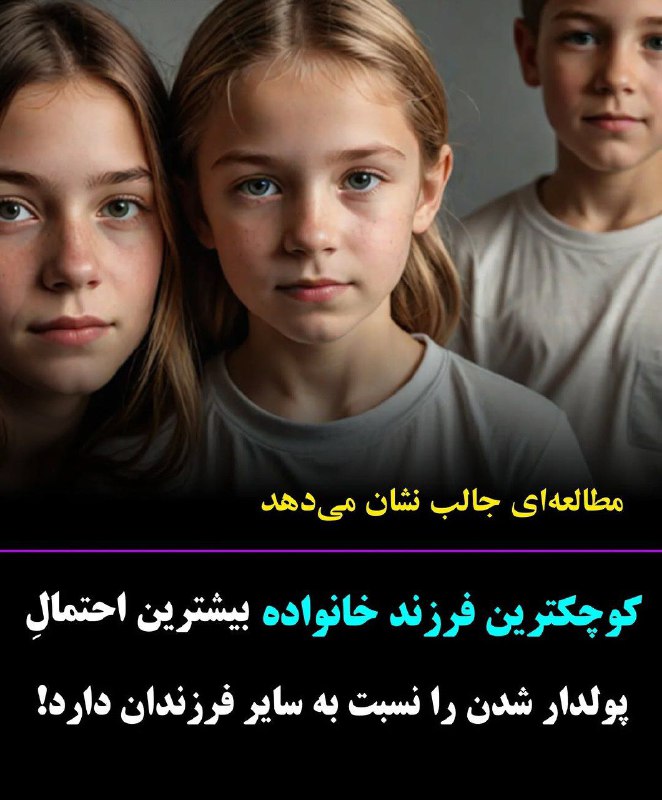 طبق آخرین تحقیقات، احتمال اینکه کوچیک‌ترین فرزند خونواده از بقیه فرزندان پولدار و موفق تر بشه بیشتره.