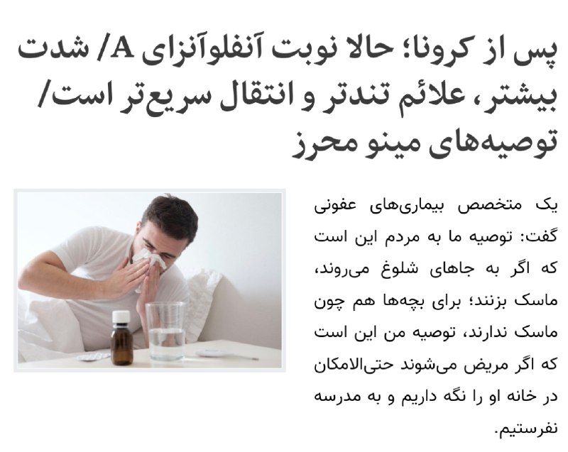 🔺پس از کرونا؛ حالا نوبت آنفلوآنزای A/در جاهای شلوغ ماسک بزنید