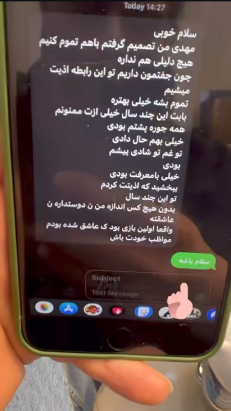 دختره برا دوس پسر ۳۰ سالش بعد از ۷ سال رابطه یه تومار فرستاده که باید با همدیگه تموم کنیم.