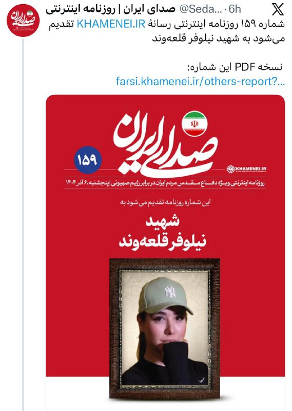 🔻اعتراض تندروها به سایت رهبری در پی انتشار عکس شهید نیلوفر قلعهوند: