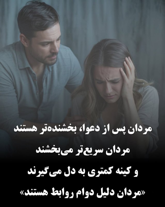 طبق تحقیقات جدید، مرد ها بعد از دعوا با پارتنرشون زودتر و راحت تر میبخشن، کینه کمتری به دل میگیرن و زودتر وارد فاز آشتی و ترمیم رابطه میشن.