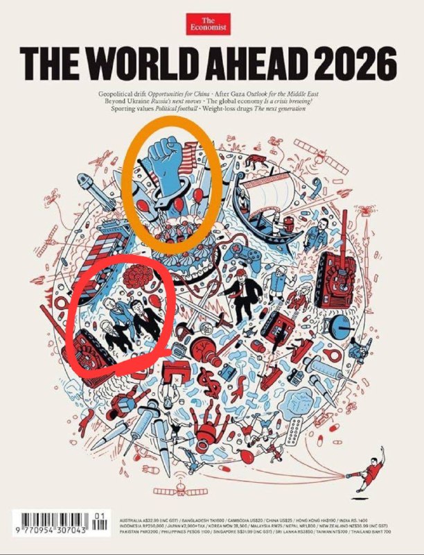 مجله اکونومیست تو وقایع ۲۰۲۶ دستگیری مادورو رو پیشبینی کرده بود. همونیه که به مچش دستبند زدن. زنجیر دستبند میرسه به یه کیک تولد با عدد ۲۵۰، امسال ۲۵۰مین سالگرد تاسیس آمریکاست...در واقع میشه گفت اینا همش برنامه ریزی شدست.