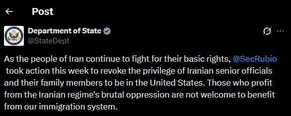 روبیو این هفته اقدام به لغو امتیاز حضور مقامات ارشد ایرانی و اعضای خانواده‌شان در ایالات متحده کرد.