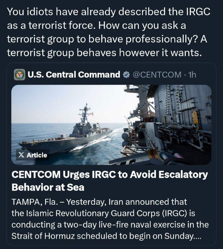 🔻تسنیم نوشت: برخی کانالهای تلگرامی از ساعاتی پیش شایعهای را به صورت پرحجم مبنی بر ترور سردار «تنگسیری» فرمانده نیروی دریایی سپاه پاسداران منتشر میکنند.
