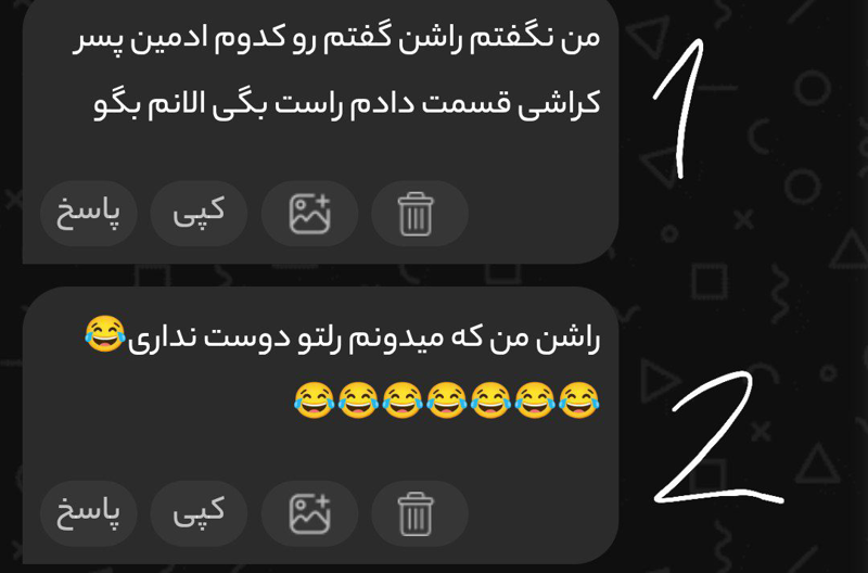 ما تنها پسری ک رل داره تو ادمینا راشن ک میدونم میخاید بگم راشن ولی بکشید بیرون از ای موضوع رو کسی کراش نیستم😐😂