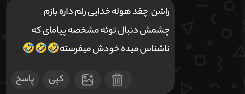داش تو نه تو دل راشن خبر داری و نه اینک اجازه قضاوت دیگران داری راشن اگه هول بود هیچوقت نمیومد اسم طرف بزنه تو بیوش!