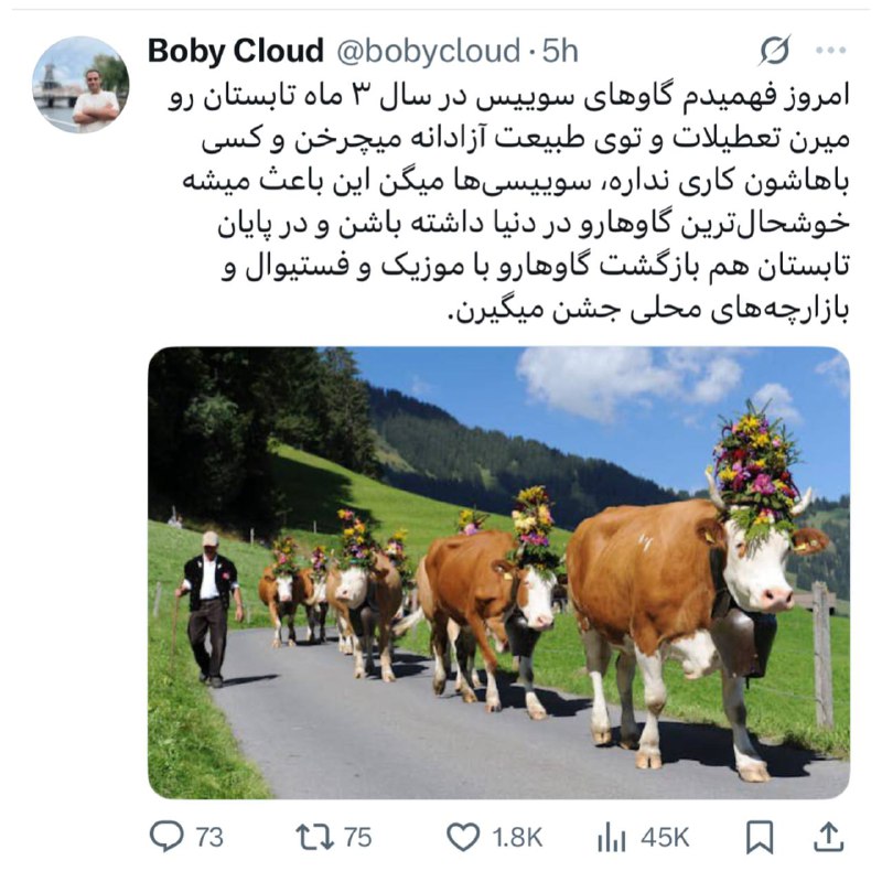 زندگی گاوها در سوئیس لاکچری تر از زندگی من در ایرانه