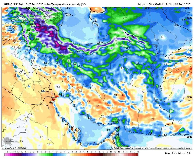 🔴از آخر این هفته با ریزش هوای خنک شمالی به کشور شاهد کاهش محسوس دمای هوا در استان‌های نیمه غربی و نوار شمالی کشور خواهیم بود.