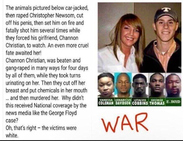 🔻شَنون و کریس، در حال رانندگی بودند که توسط گروهی سیاهپوست مورد حمله قرار گرفتن و با استفاده از اسلحه، آنها را ربودند و خودرو را سرقت کردند.