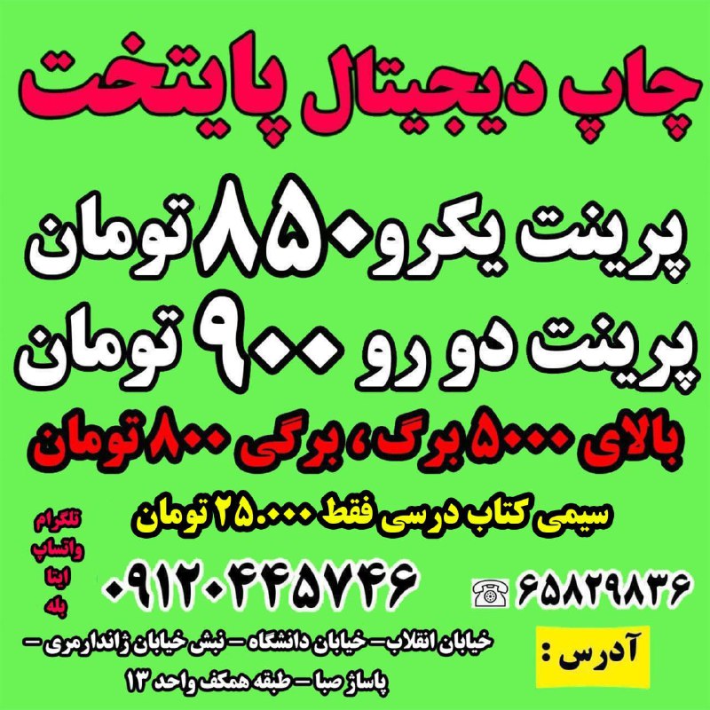 ✅فتوکپی و پرینت یکرو ۸۵۰ تومان ، دو رو ۹۰۰ تومان.