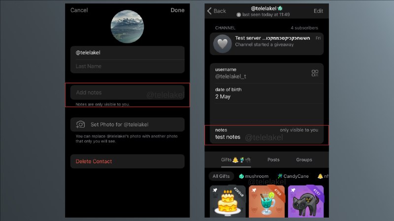 توی آپدیت بعدی تلگرام میتونین برای هر کاربر یادداشت بزارین و این یادداشت رو فقط خودتون میتونین ببینین.