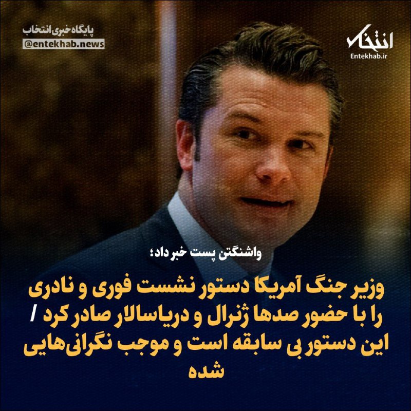 وزیر جنگ آمریکا دستور نشست فوری و نادری را با حضور صد‌ها ژنرال و دریاسالار صادر کرد