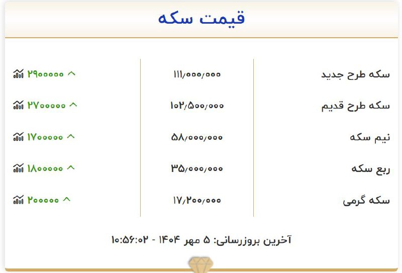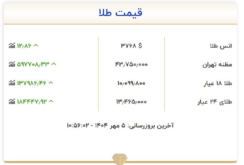 🔺قیمت طلا و سکه بر اساس سایت رسمی اتحادیه طلا کشور