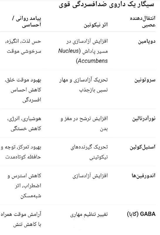سیگار با همه‌ی بدی‌هایش یک داروی ضدافسردگی بسیار قدرتمند است و مهمترین علت عدم موفقیت در قطع آن، عود افسردگیست که سیگار به عنوان خوددرمانیِ آن استفاده می‌شود.