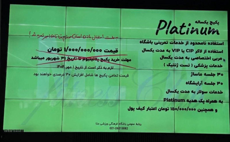 قیمت شهریه یک ساله باشگاه «پلاتینوم» در شمال شهر تهران؛ ۱ میلیارد تومنه. یعنی چیزی حدود ماهی ۸۰ میلیون تومن.