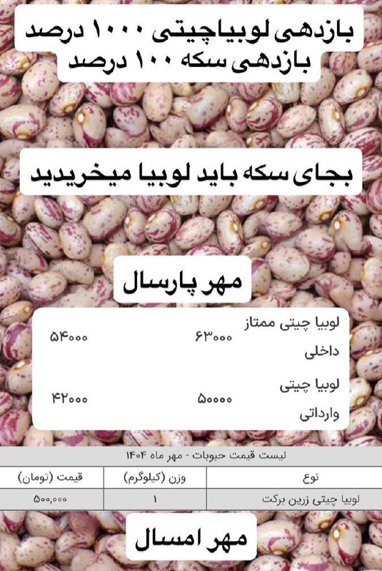 زرنگ کسی است که مهر پارسال لوبیاچیتی خریده و 1000 درصد سود کرده