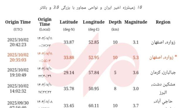 پس‌لرزه ۳.۱ ریشتری در اصفهان/ زواره اصفهان برای بار دوم لرزید
