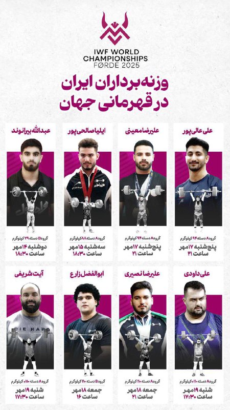 🏋‍♀برنامه رقابت وزنه‌برداران ایران در قهرمانی جهان