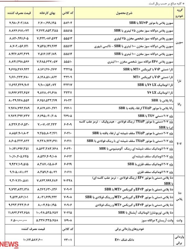 🔹 شرکت ایران خودرو امروز دوشنبه ۲۸ مهرماه لیست قیمت جدید و نهایی محصولات خود را با احتساب کلیه هزینه های جانبی منتشر کرد.
